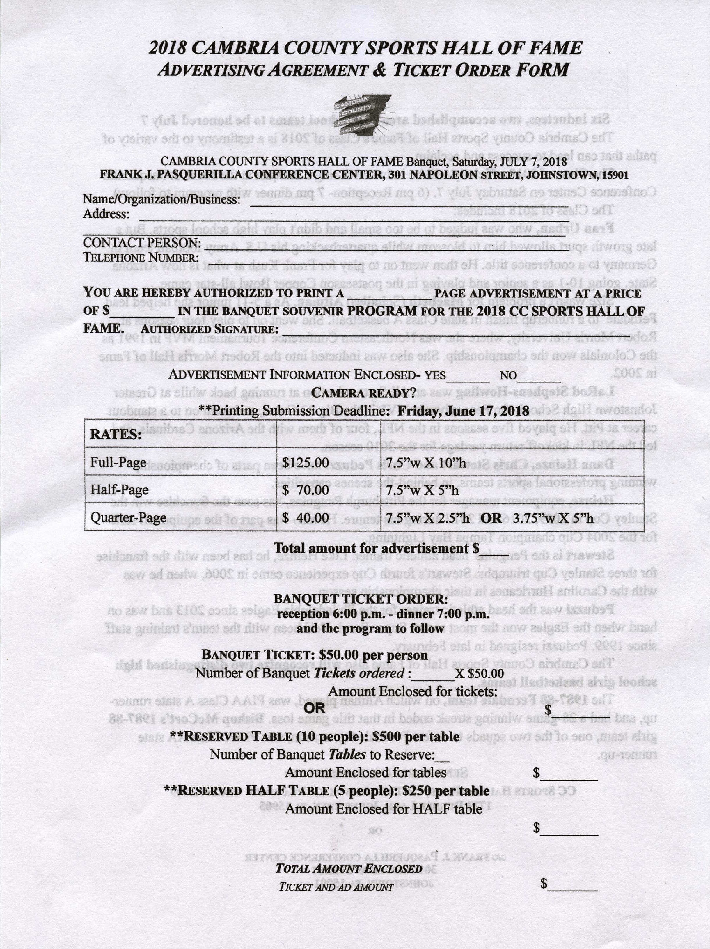 Ticket and Ad order sheet
